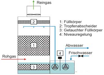豬場用除臭設備的原理比較簡單,和工業(yè)除臭設備的填料塔(圖一)原理一樣,就是讓臭氣經(jīng)過填料,讓臭氣成份和噴淋液充分接觸,利用液相來吸收氣相,因為豬舍臭氣中的主要成份是氨氣和粉塵,這些物質相對都易溶于水,因而能達到除臭效果。